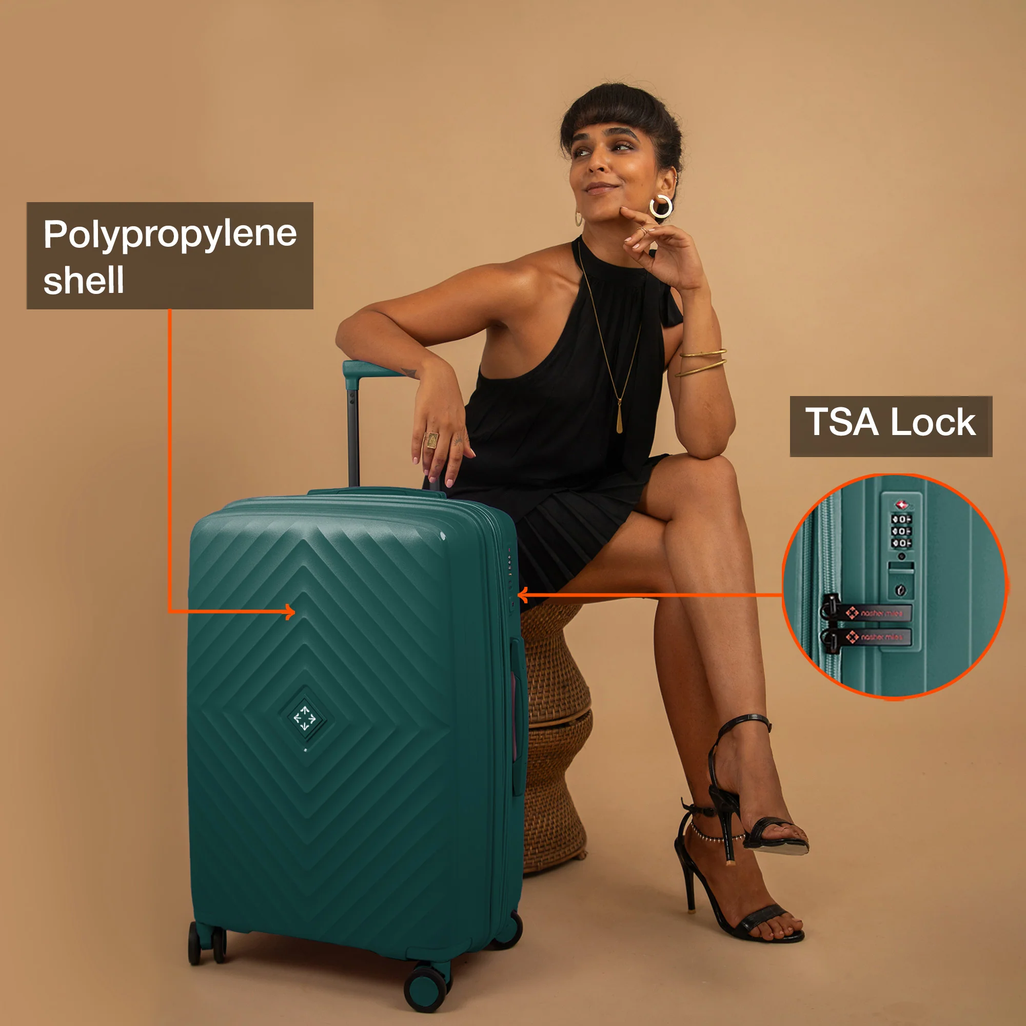 Check-In Large (L): Hard-sided luggage crafted from durable, unbreakable polypropylene material. With a 28-inch size, this check-in suitcase is ideal for trips lasting than a week, ideal for weekend getaways, business trips, or vacations. The suitcase can hold up to 20 Kg of weight.