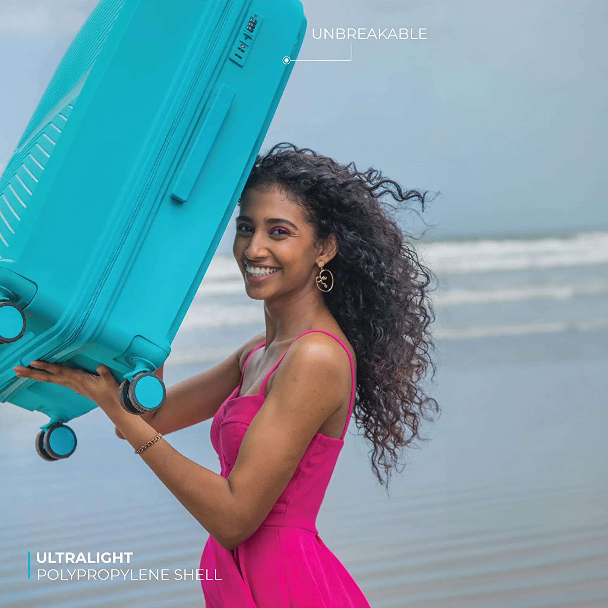 Outer Material: Luggage is made from 100% polypropylene which is very resilient, durable and lightweight. It is made to absorb impact by flexing while under stress then popping back to its original shape, eliminating dents and dings while protecting its contents.