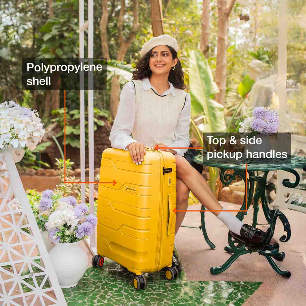 Check-In Large (L): This 28-inch lightweight, hard-sided check-in trolley bag is perfect for weekend trips or traveling abroad. It is ideal for travels lasting than a week. Suitcase can hold weight up to 20 Kgs.